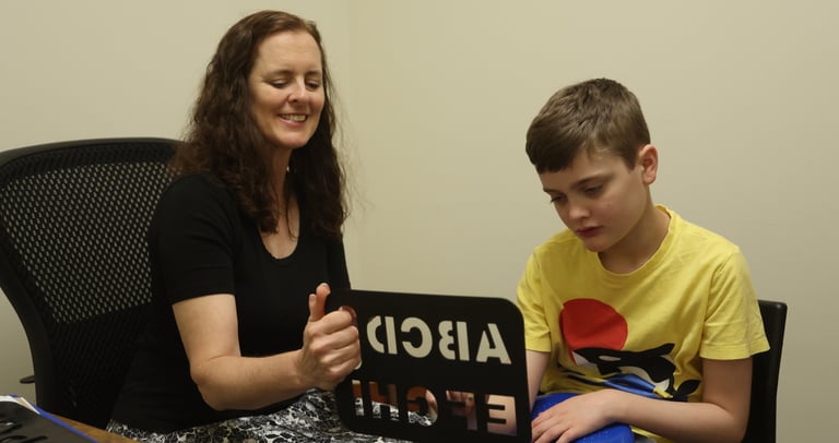 New Direction Spelling Center’s mission is to teach nonspeakers, minimal speakers, and unreliable speakers to communicate. Using Spelling to Communicate (S2C) methodology we help nonspeakers with motor and sensory challenges build the purposeful motor skills they need to spell out their thoughts and ideas.